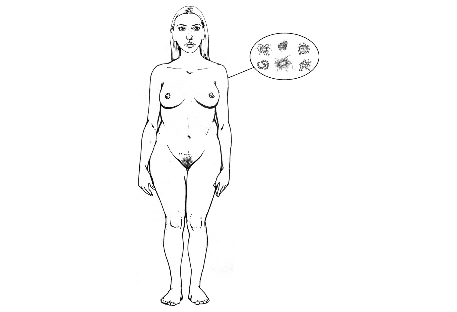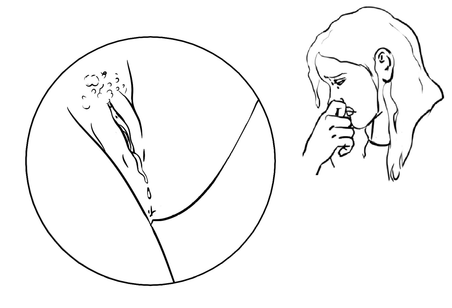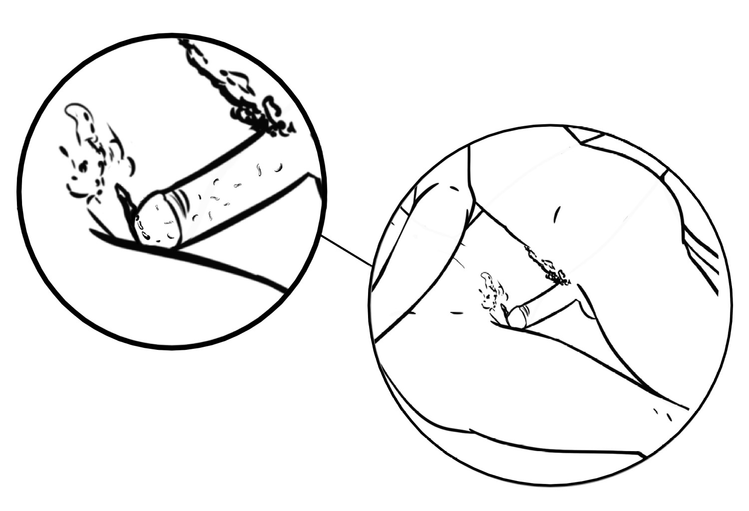 Посочете ја прво илустрацијата од Вашата десна страна, каде не се гледа дека на пенисот има бактерии/микроби. Нагласете дека бактериите/микробите се многу мали и затоа не може да се видат. Потоа посочете ја илустрацијата од Вашата лева страна, која е зголемена, со цел да се претстават бактериите/микробите на пенисот. Нагласете дека Вашата ќерка/ученичка/роднина/корисничка може да добие сексуална инфекција само ако има секс/сексуален однос без кондом.