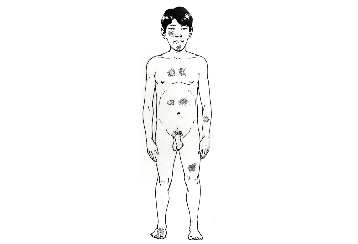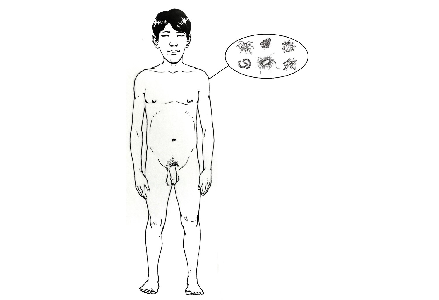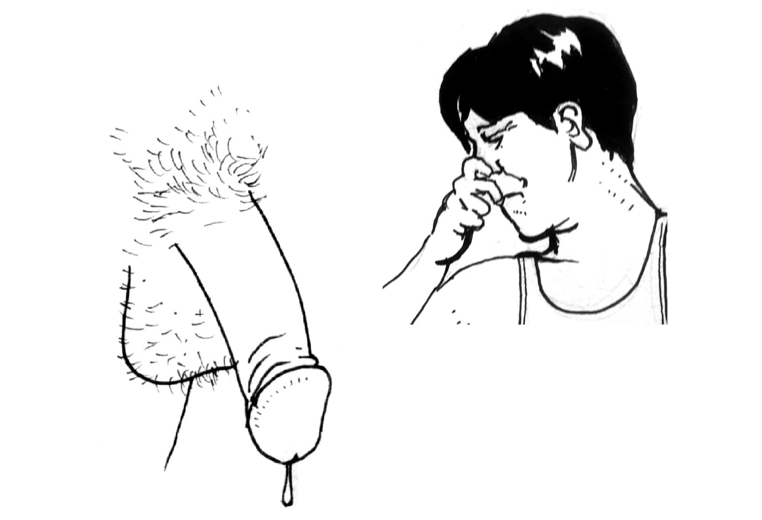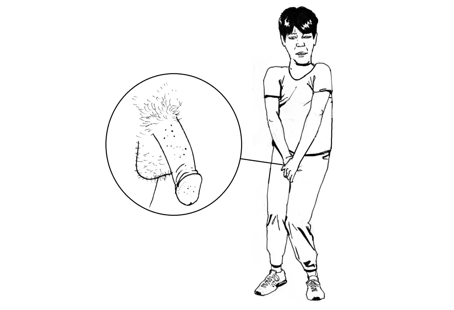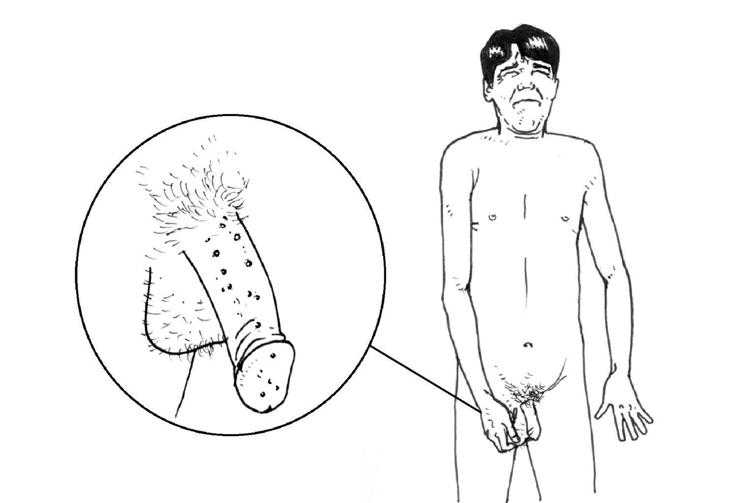 Покрај точките наведете дека на пенисот може да има и ранички или плускавци. Објаснете дека раничките или плускавците се поголеми од точките и може да предизвикаат болка или пецкање. Болката и пецкањето асоцирајте ги со претходни искуства на Вашето дете/ученик/роднина/корисник (при удар, исекотина, боцкање со игла и сл.) за да може да добие претстава за каква промена станува збор.