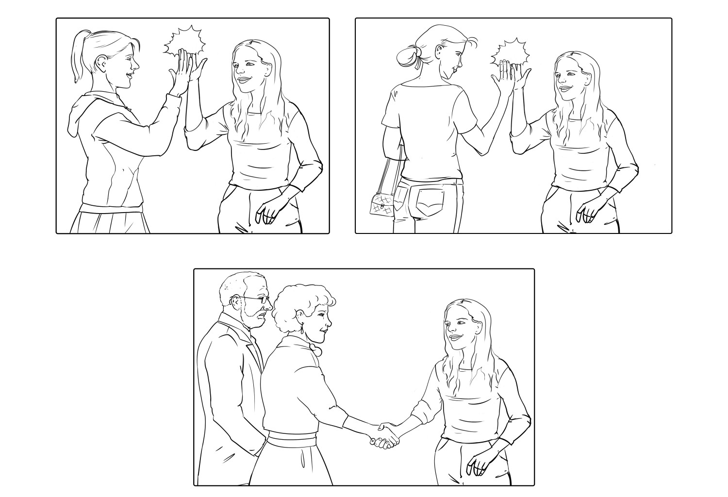 Доколку во опкружувањето на Вашата ќерка/ученичка/роднина/корисничка има и други лица кои ја допираат на ваков начин, при поздравување,наведете ги и нив, за да се претстави и тој допир како пријатен (тренер, наставничка и сл.).