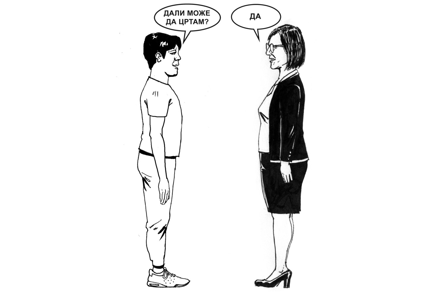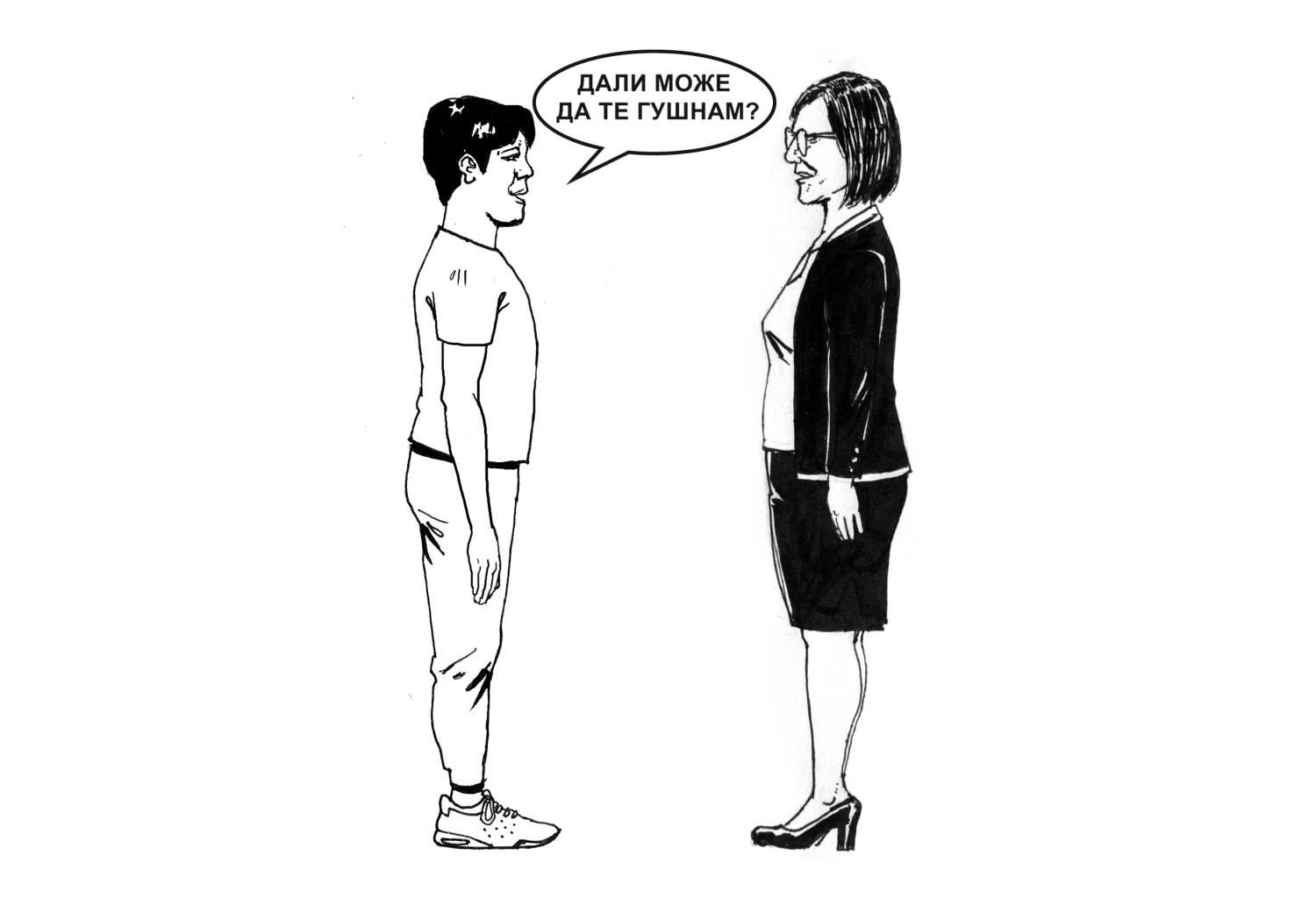 Набројте ги наставниците и наставничките кои Вашето дете/ученик/роднина/корисник ги има, доколку оди во училиште. Доколку посетува дневен центар наведете ги професионалците од центарот. Доколку Вашето дете/ученик/роднина/корисник е варботен терминот наставници и наставнички заменете го со колеги и колешки од работа. Нагласете дека е во ред да се праша за дозвола, пред да се гушне некој, бидејќи само така Вашето дете/ученик/роднина/корисник може да знае дали може да допре некој или не. Оваа ситуација можете да ја вежбате со Вашето дете/ученик/роднина/корисник преку игра на улоги, каде практично ќе ја претставите ситуацијата и прашањето кое треба да се постави.