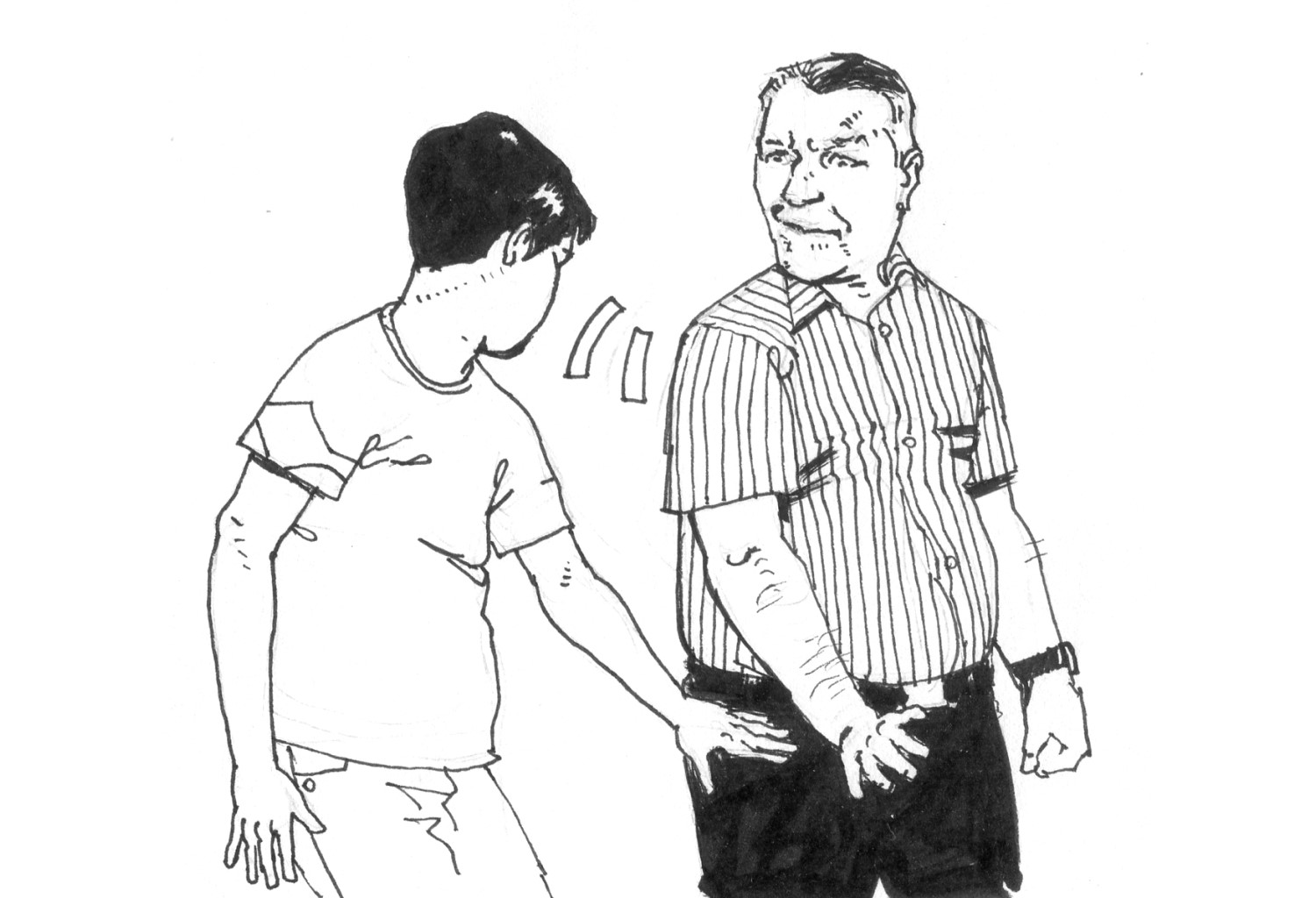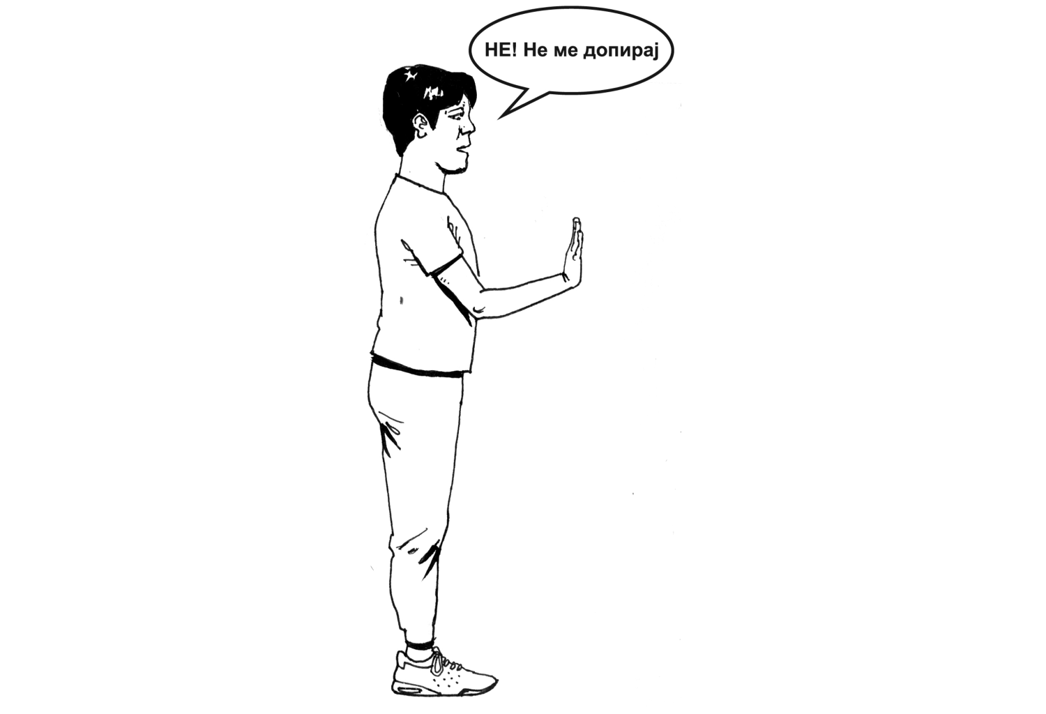 Кога се поставуваат граници и се посочува што не смее да се прави, задолжително се нудат опции што смее да се прави, односно во оваа ситуација кои допири се дозволени. Доколку има и друг начин на допирање, кој според Вас е соодветен, а истиот не е наведен посочете го и него. Опишете ја лицевата експресија на таткото (насмеан, расположен и сл.) и положбата на неговото тело (стои блиску до детето, дозволува да го гушне, бакне и држи за рака).