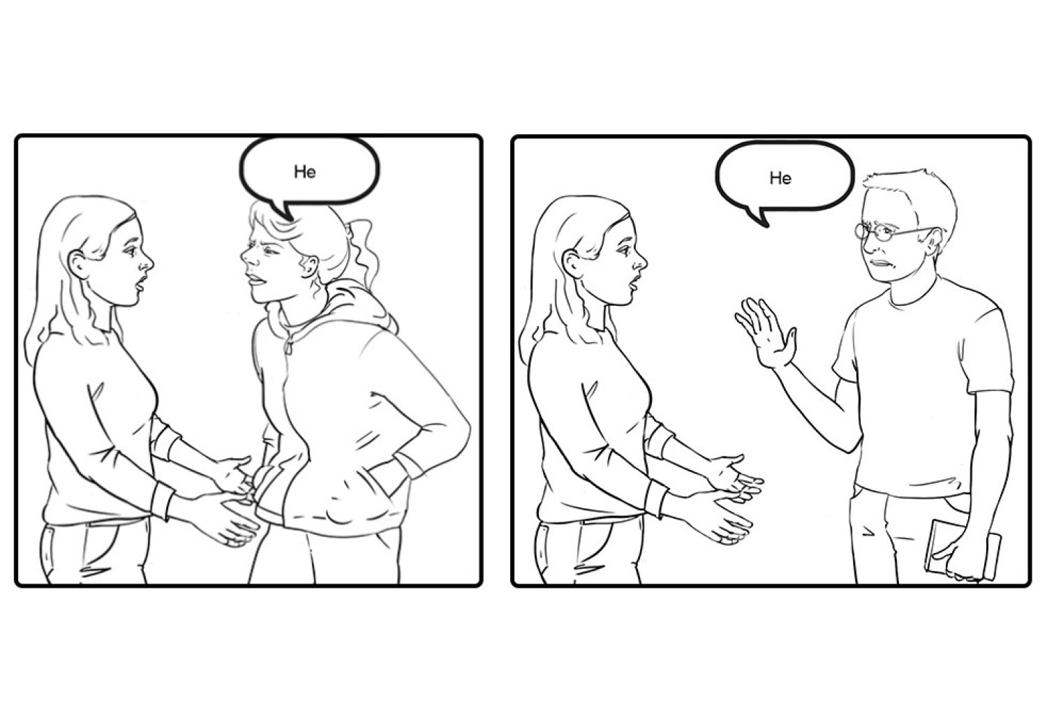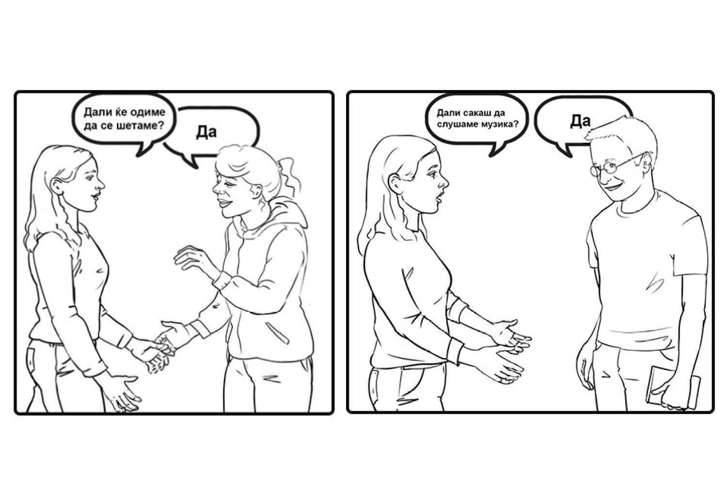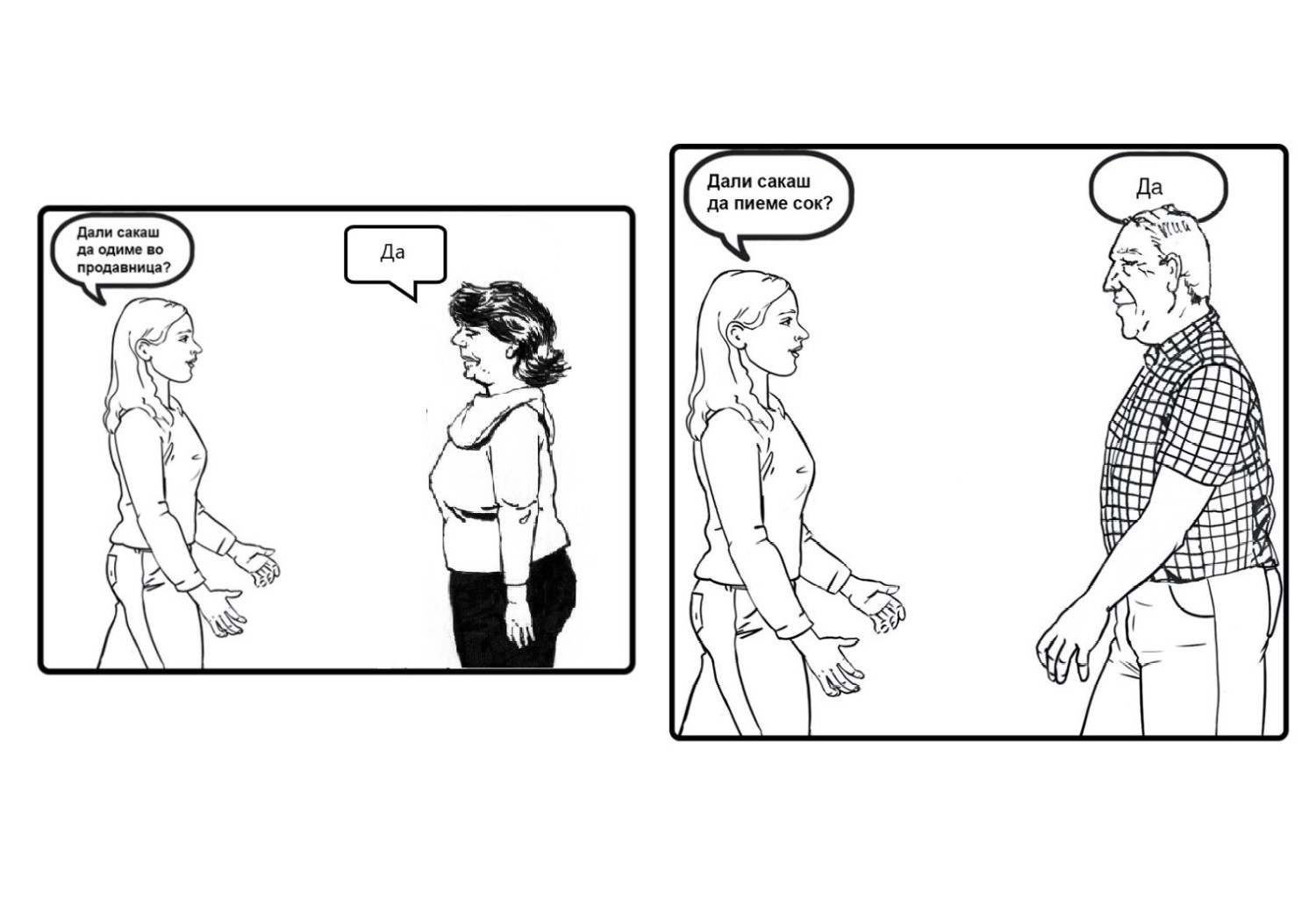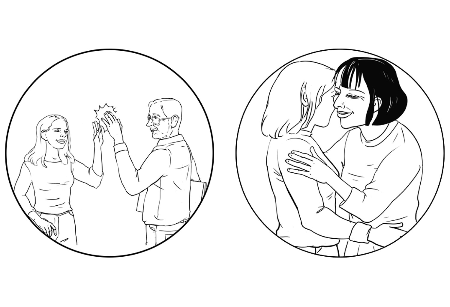 Набројте ги наставниците и наставничките кои Вашата ќерка/ученичка/роднина/корисничка ги има, доколку оди во училиште. Доколку посетува дневен центар наведете ги професионалците од центарот. Доколку Вашата ќерка/ученичка/роднина/корисничка е варботена терминот наставници и наставнички заменете го со колеги и колешки од работа. Нагласете дека е во ред да се праша за дозвола, пред да се гушне некој, бидејќи само така Вашата ќерка/ученичка/роднина/корисничка може да знае дали може да допре некој или не. Оваа ситуација можете да ја вежбате со Вашата ќерка/ученичка/роднина/корисничка преку игра на улоги, каде практично ќе ја претставите ситуацијата и прашањето кое треба да се постави.